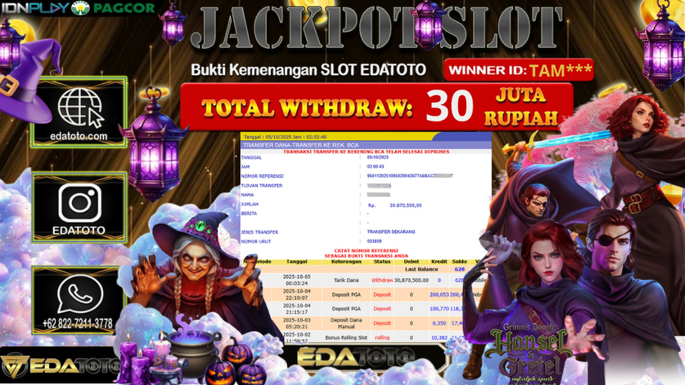 Selamat Kepada Pemilik user ID : Tam*** Hari/Tanggal : minggu/ 05, Oktober 2025 Jackpot : Rp. 30.870.500 JT Permainan : Grimms . . .