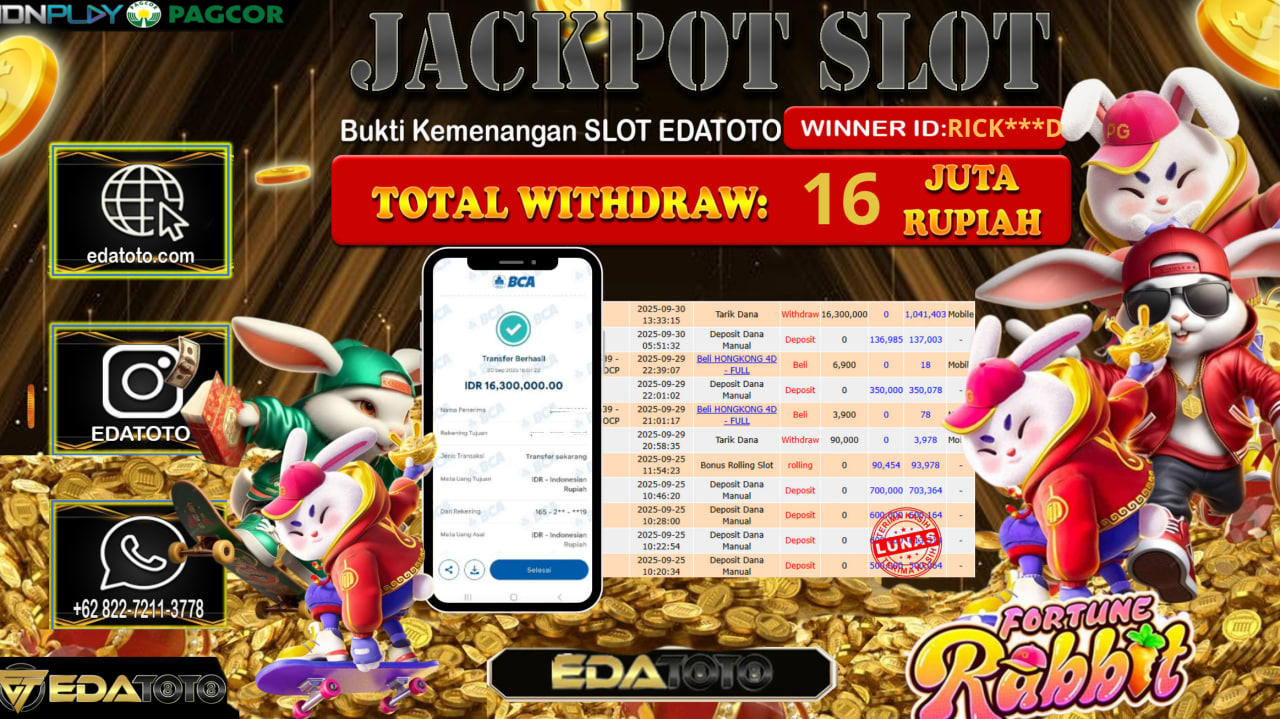 Selamat Kepada Pemilik user ID : RICK***D Hari/Tanggal : Rabu/ 01, Oktober 2025 Jackpot : Rp. 16.000.000 JT Permainan : Fortune . . .